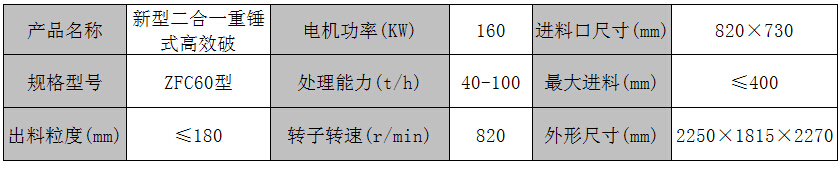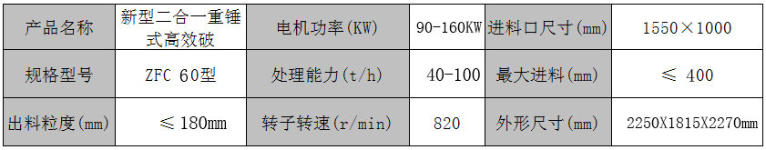 ZFC60型新型高效節(jié)能型二合一破碎機(jī)術(shù)參數(shù):