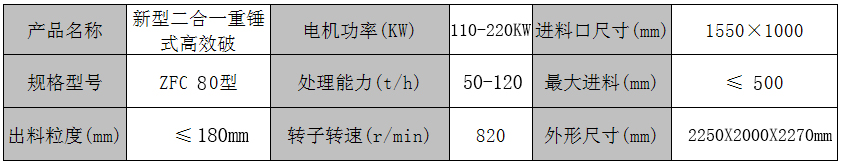 ZFC80型新型高效節(jié)能型二合一破碎機術參數(shù):