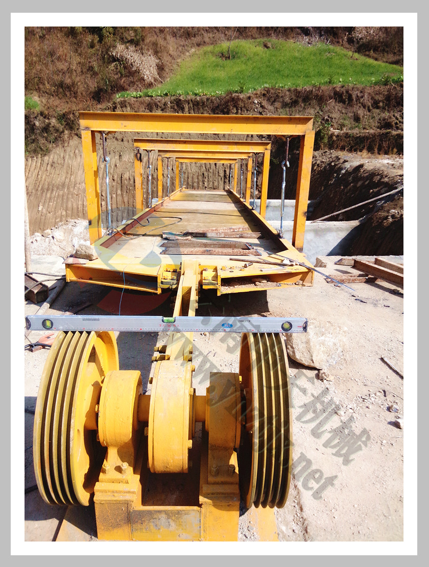 | 安裝過程中的大梭槽及給料機 |